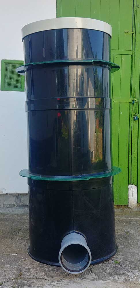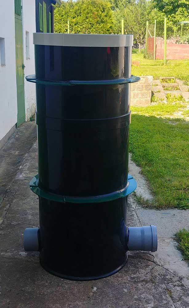 Pozor! Tento typ šachty lze použít jen pro přípojky do hloubky do max. 1.5m, pro hlubší je nutno použít betonové prefabrikované díly o průměru DN1000.