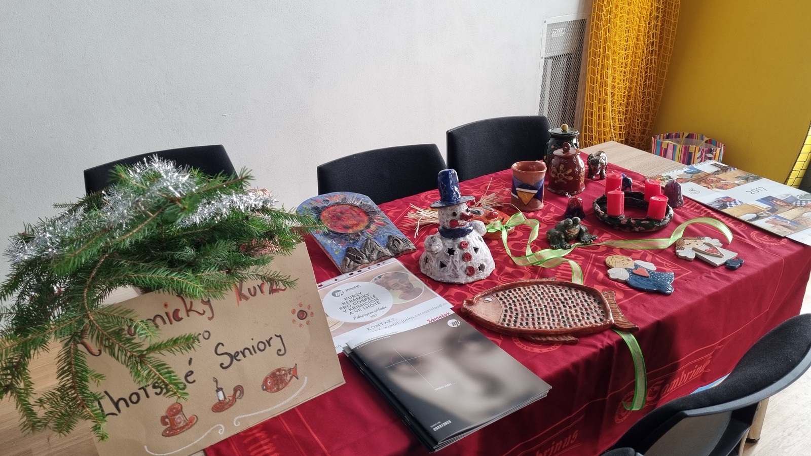 Připravena byla také improvizovaná výstavka keramiky, kterou v rámci seniorského kurzu vyráběli jeho frekventanti v MUŠCE.